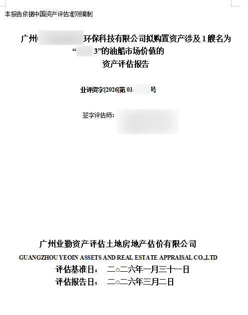 【经济行为】:根据《****(广州)有限公司第三届董事会第八次会议决议》、《战企部关于******项目的通知》(****函(2026)**号),上级单位同意我司购置****船舶,故委托评估机构对拟购置资产涉及的广州****服务有限公司所有的一艘船名为“**3”的油船资产市场价值进行评估,以作为购置资产提供委估资产市场价值参考依据。